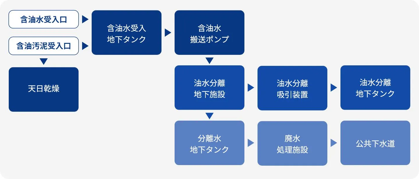 油分については、地下埋設型の大型油水分離施設により油分と水分とを分離させます。