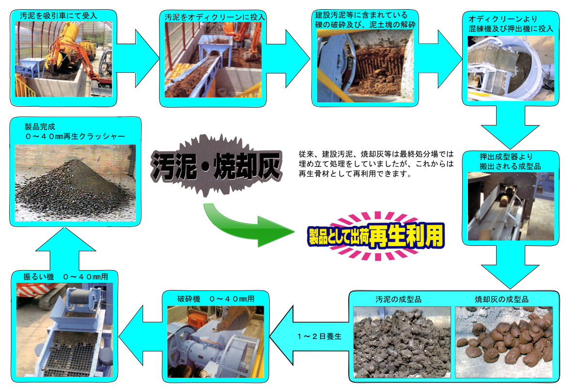 建設汚泥・焼却灰の再利用を基にクラッシャーを製造するシステムです。