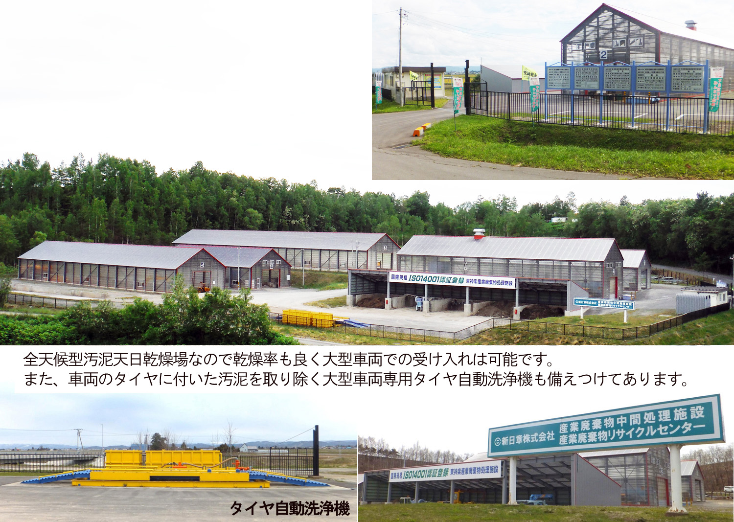 各種整備工場・スタンド等に設置されている油水分離施設の汚泥槽の汚泥には油分がたくさん含まれています。 油混じりの汚泥は、前処理施設を利用して油分と土砂分を分離させ、汚泥については、天日乾燥により処理します。 油分については、地下埋設型の大型油水分離施設により油分と水分とを分離させます。